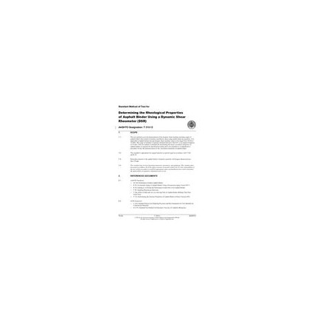 AASHTO T 315-12 (2016) Standard Method of Test for Determining the Rheological Properties of Asphalt Binder Using a Dynamic Shear Rheometer (DSR)