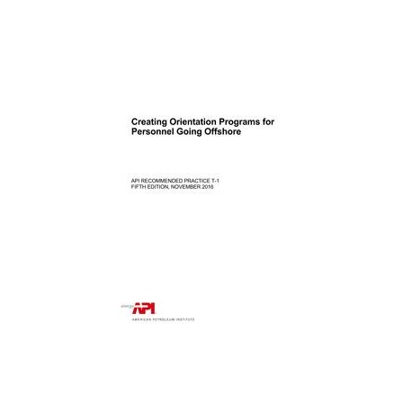 This recommended practice is intended to serve as a guide to develop orientation materials for personnel and visitors prior to their first trip offshore. The scope and applicability of this document concludes after check-in at the offshore facility and receipt of the facility-specific orientation.