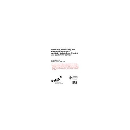 Covers the minimum requirements for lubrication systems, oil-type shaft-sealing systems, and control-oil systems for special-purpose applications. Such systems may serve compressors, gears, pumps, and drivers. The standard includes the systems' components, along with the required controls and instrumentation. Data sheets and typical schematics of both system components and complete systems are also provided. Chapters include General Requirements, Special Purpose Oil Systems, General Purpose Oil Systems and Dry Gas Seal Module Systems.