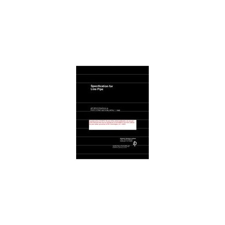 Includes December 1997 errata. Provides standards for pipe suitable for use in conveying gas, water, and oil in both the oil and natural gas industries. Covers seamless and welded steel line pipe, including standard-weight and extra-strong threaded line pipe; and standard-weight plain-end, regular-weight plain-end, special plain-end, extra-strong plain-end, and double-extra-strong plain-end pipe; as well as bell and spigot and through-flowing (TFL) pipe.