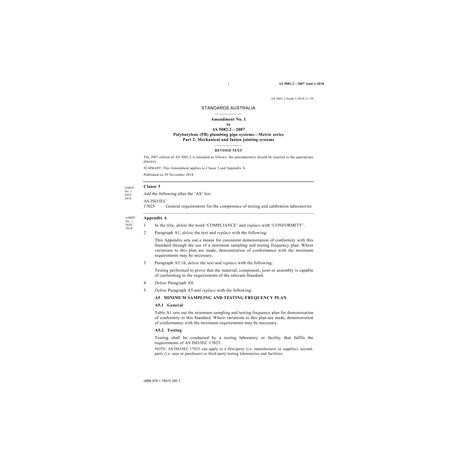 AS 5082.2-2007 Amd 1:2018 [ Current ] Polybutylene (PB) plumbing pipe systems - Metric series, Part 2: Mechanical and fusion jointing systems