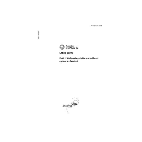 AS 2317.1:2018 [ Current ] Lifting points, Part 1: Collared eyebolts and collared eyenuts - Grade 4