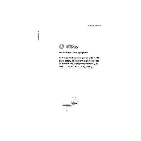 AS 60601.2.6:2018 Medical electrical equipment, Part 2.6: Particular requirements for the basic safety and essential performance of microwave therapy equipment (IEC 60601-2-6:2016 (ED 2.1), MOD)