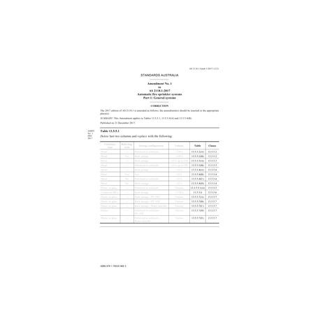 AS 2118.1:2017 Amd 1:2017 [ Current ] Automatic fire sprinkler systems,, Part 1: General systems