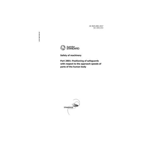 This Australian Standard specifies parameters based on values for approach speeds of parts of the human body and provides a methodology to determine the minimum distances to a hazard zone from the detection zone or from actuating devices of safeguards.