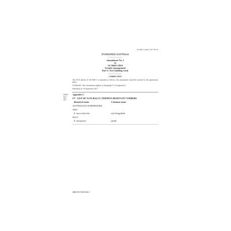 AS 3660.1:2014 Amd 1:2017 [ Current ] Termite management, Part 1: New building work