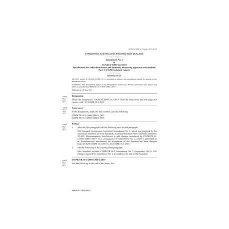 AS CISPR 16.3:2013 Amd 1:2017 Amendment 1 - Specification for radio disturbance and immunity measuring apparatus and methods - Part 3: CISPR technical reports