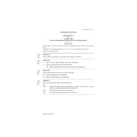 AS 4628-2005 Amd 1:2016 [ Current ] Pressure and temperature limit devices for use with gas burners