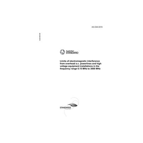 AS 2344:2016 Limits of electromagnetic interference from overhead a.c. powerlines and high voltage equipment installations in the frequency range 0.15 MHz to 3000 MHz