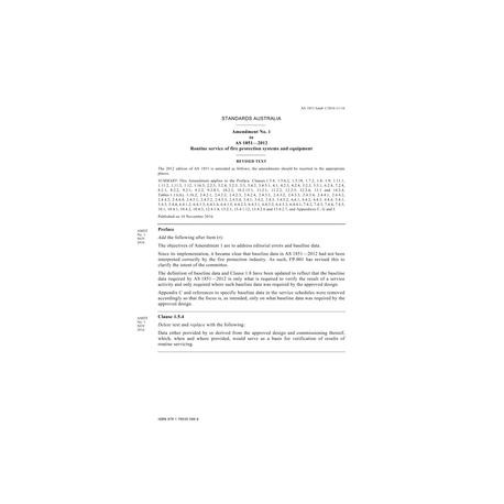 AS 1851-2012 Amd 1:2016 [ Current ] Routine service of fire protection systems and equipment