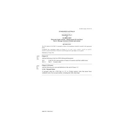 AS 2805.2:2015 Amd 1:2016 [ Current ] Electronic funds transfers - Requirements for interfaces - Message structures, format and content