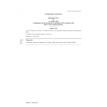 AS 1905.1:2015 Amd 1:2016 [ Current ] Components for the protection of openings in fire-resistant walls - Part 1: Fire-resistant doorsets