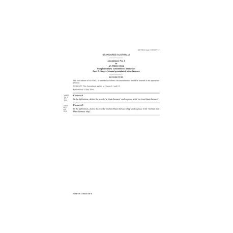 AS 3582.2:2016 Amd 1:2016 [ Current ] Supplementary cementitious materials, Part 2: Slag - Ground granulated blast-furnace