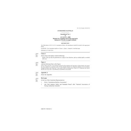 AS 1141.22-2008 Amd 1:2016 [ Current ] Amendment to AS 1141.22-2008 Methods for sampling and testing aggregates - Wet/dry strength variation