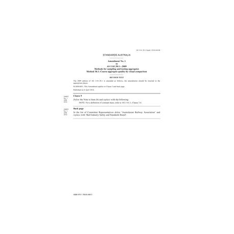 AS 1141.30.1-2009 Amd 1:2016 [ Current ] Methods for sampling and testing aggregates - Method 30.1: Coarse aggregate quality by visual comparison