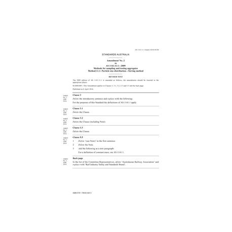 AS 1141.11.1-2009 Amd 2:2016 [ Current ] Methods for sampling and testing aggregates, Part 11.1: Particle size distribution - Sieving method