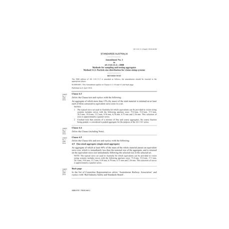 AS 1141.11.2-2008 Amd 1:2016 [ Current ] Methods for sampling and testing aggregates, Part 11.2: Particle size distribution for vision sizing systems