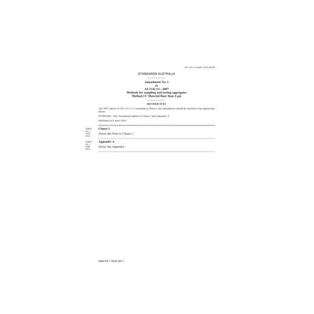 AS 1141.13-2007 Amd 1:2016 [ Current ] Methods for sampling and testing aggregates - Method 13: Material finer than 2 µm