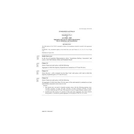AS 2758.0-2009 Amd 1:2016 [ Current ] Aggregates and rock for engineering purposes, Part 0: Definitions and classification