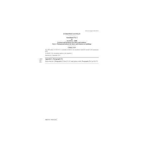 AS 4145.2-2008 Amd 2:2015 [ Current ] Locksets and hardware for doors and windows - Part 2: Mechanical locksets for doors and windows in buildings