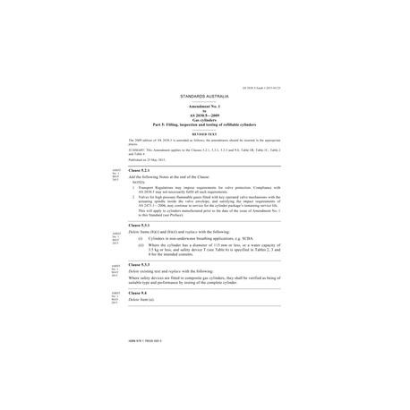 AS 2030.5-2009 Amd 1:2015 [ Current ] Gas cylinders - Filling, inspection and testing of refillable cylinders