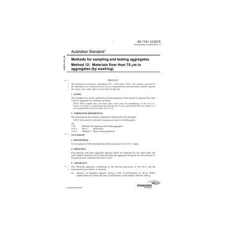 AS 1141.12:2015 [ Current ] Methods for sampling and testing aggregates, Method 12: Materials finer than 75 µm in aggregates (by washing)