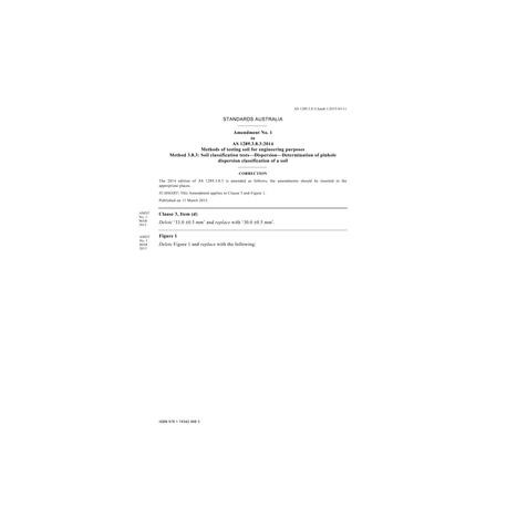 AS 1289.3.8.3:2014 Amd 1:2015 Methods of testing soil for engineering purposes - Soil classification tests - Dispersion - Determination of pinhole dispersion classification of a soil