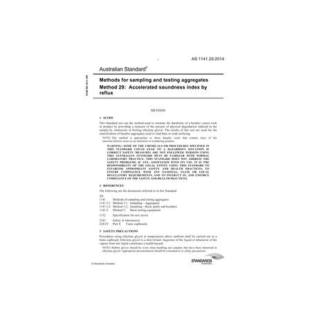 AS 1141.29:2014 [ Current ] Methods for sampling and testing aggregates, Method 29: Accelerated soundness index by reflux