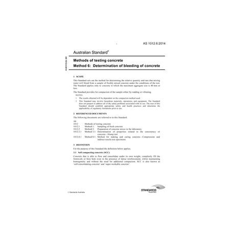 AS 1012.6:2014 [ Current ] Methods of testing concrete, Method 6: Determination of bleeding of concrete