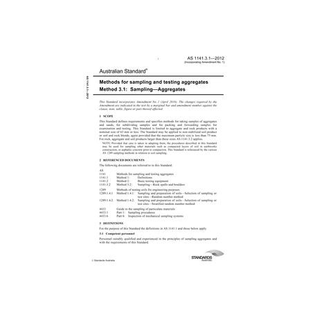 AS 1141.3.1-2012 [ Current ] Methods for sampling and testing aggregates, Method 3.1: Sampling - Aggregates