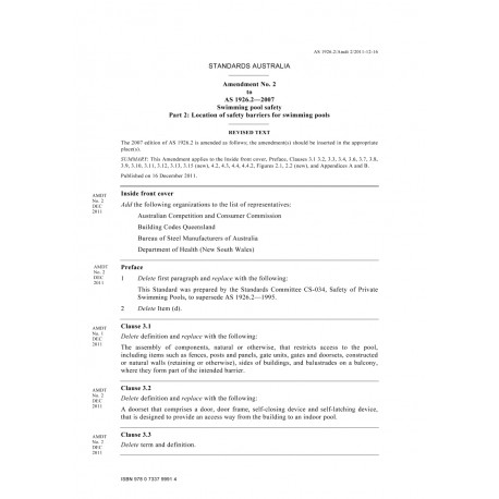AS 1926.2-2007 AMDT 2 [ Current ] Swimming pool safety-Location of safety barriers for swimming pools