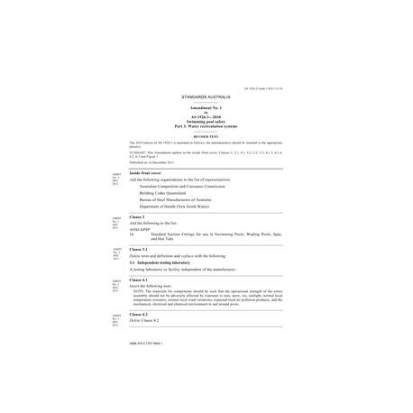 AS 1926.3-2010 AMDT 1 [ Current ] Swimming pool safety-Water recirculation systems