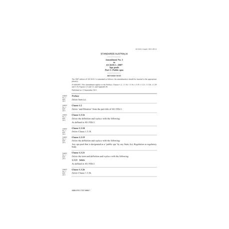 AS 2610.1-2007 AMDT 1 [ Current ] Spa pools - Public spas