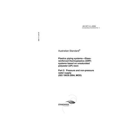 AS 3571.2-2009 Plastics piping systems - Glass-reinforced thermoplastics (GRP) systems based on unsaturated polyester (UP) resin-Pressure and non-pressure water supply