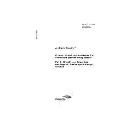 AS 2213.5-2008 Commercial road vehicles - Mechanical connections between towing vehicles, Part 5: Strength tests for pin-type couplings and drawbar eyes for hinged drawbars