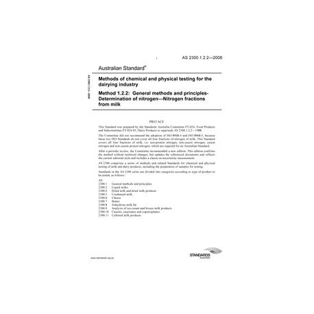 AS 2300.1.2.2-2008 Methods of chemical and physical testing for the dairying industry, Method 1.2.2: General methods and principles-Determination of nitrogen - Nitrogen fractions from milk