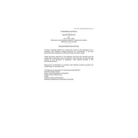 AS 1774.29-2008 [ Current ] Refractories and refractory materials - Physical test methods, Method 29: Cast coverage