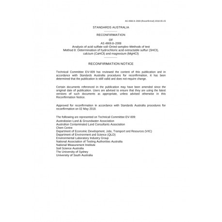 AS 4969.8-2008 Analysis of acid sulfate soil - Dried samples - Methods of test, Method 8: Determination of hydrochloric acid extractable sulfur (SHCl), calcium (CaHCl) and magnesium (MgHCl)