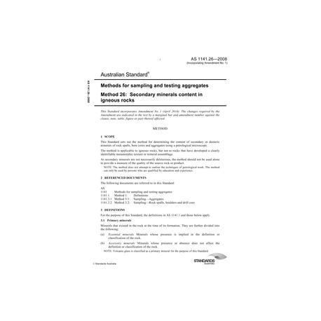 AS 1141.26-2008 [ Pending Revision ] Methods for sampling and testing aggregates, Method 26: Secondary minerals content in igneous rocks