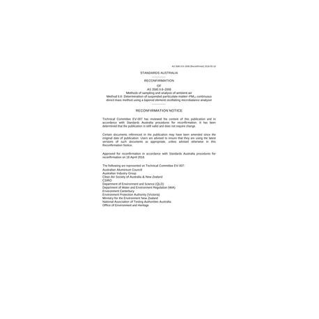 AS 3580.9.8-2008 Methods for sampling and analysis of ambient air, Method 9.8: Determination of suspended particulate matter - PM 10 continuous direct mass method using a tapered element oscillating microbalance analyser