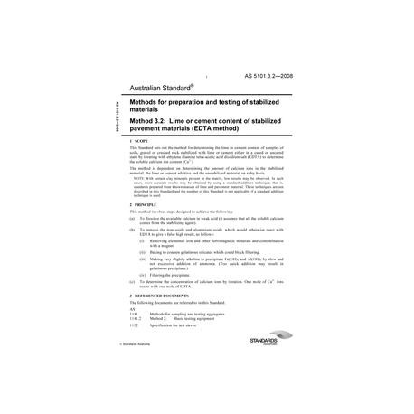 AS 5101.3.2-2008 Methods for preparation and testing of stabilized materials, Method 3.2: Lime or cement content of stabilized pavement materials (EDTA method)