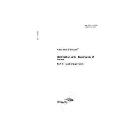 AS 3523.1-2008 [ Pending Revision ] Identification cards - Identification of issuers, Part 1: Numbering system