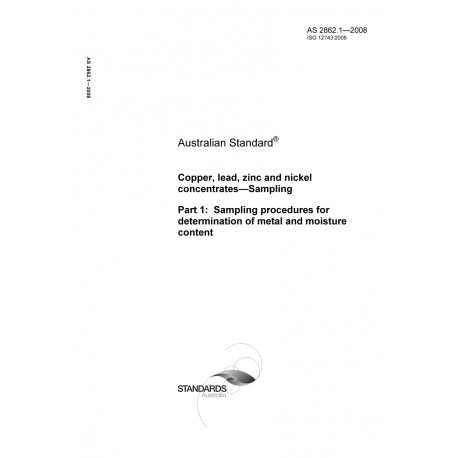 AS 2862.1-2008 [ Current ] Copper, lead, zinc and nickel concentrates - Sampling, Part 1: Sampling procedures for determination of metal and moisture content