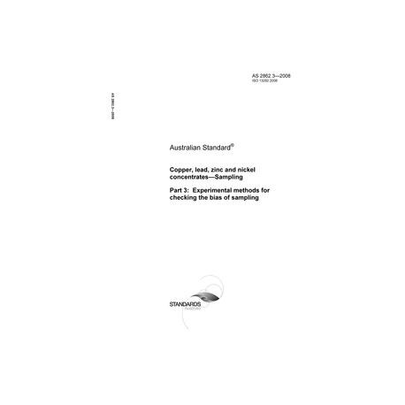 AS 2862.3-2008 [ Current ] Copper, lead, zinc and nickel concentrates - Sampling, Part 3: Experimental methods for checking the bias of sampling