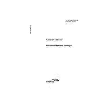 Adopts IEC 61165, Ed. 2.0 (2006) to provide guidance on the application of Markov techniques to modelling and analysing a system which exhibits state-dependent behaviour and to estimating reliability, availability, maintainability and safety measures.