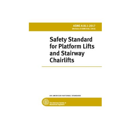 The ASME A18.1 Safety Standard for Platform Lifts and Stairway Chairlifts presents certain guides for the design, construction, installation, operation, inspection, testing, maintenance, and repair of inclined stairway chairlifts, and inclined and vertical platform lifts. It covers devices intended for transportation of a mobility-impaired person onlytypically within household applications. The ultimate goal of this Standard is to help protect public safety, while reflecting best-practices of industry.