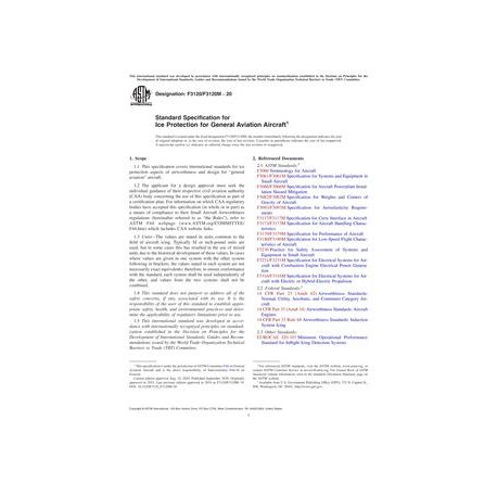1.1This specification covers international standards for ice protection aspects of airworthiness and design for general aviation aircraft.