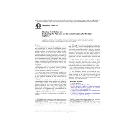 ASTM F3044-20 Standard Test Method for Evaluating the Potential for Galvanic Corrosion for Medical Implants