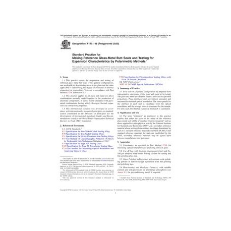 ASTM F140-98(2020) Standard Practice for Making Reference Glass-Metal Butt Seals and Testing for Expansion Characteristics by Polarimetric Methods