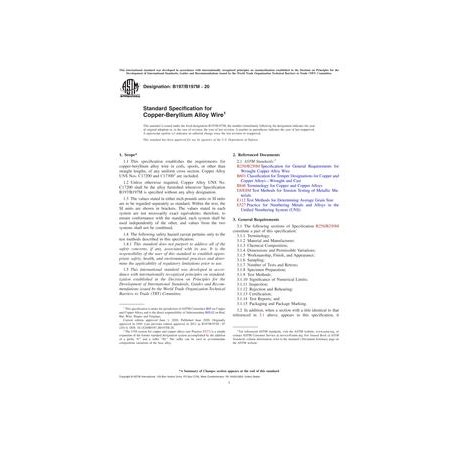 ASTM B197/B197M-20 Standard Specification for Copper-Beryllium Alloy Wire